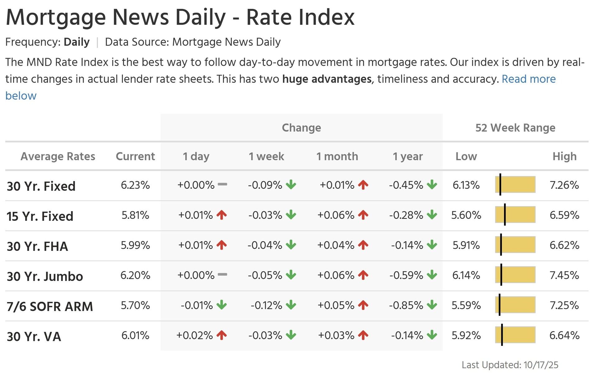 This week’s average 30-year fixed mortgage rate is 6.23% (⬇️ 0.11 from this time last week.)