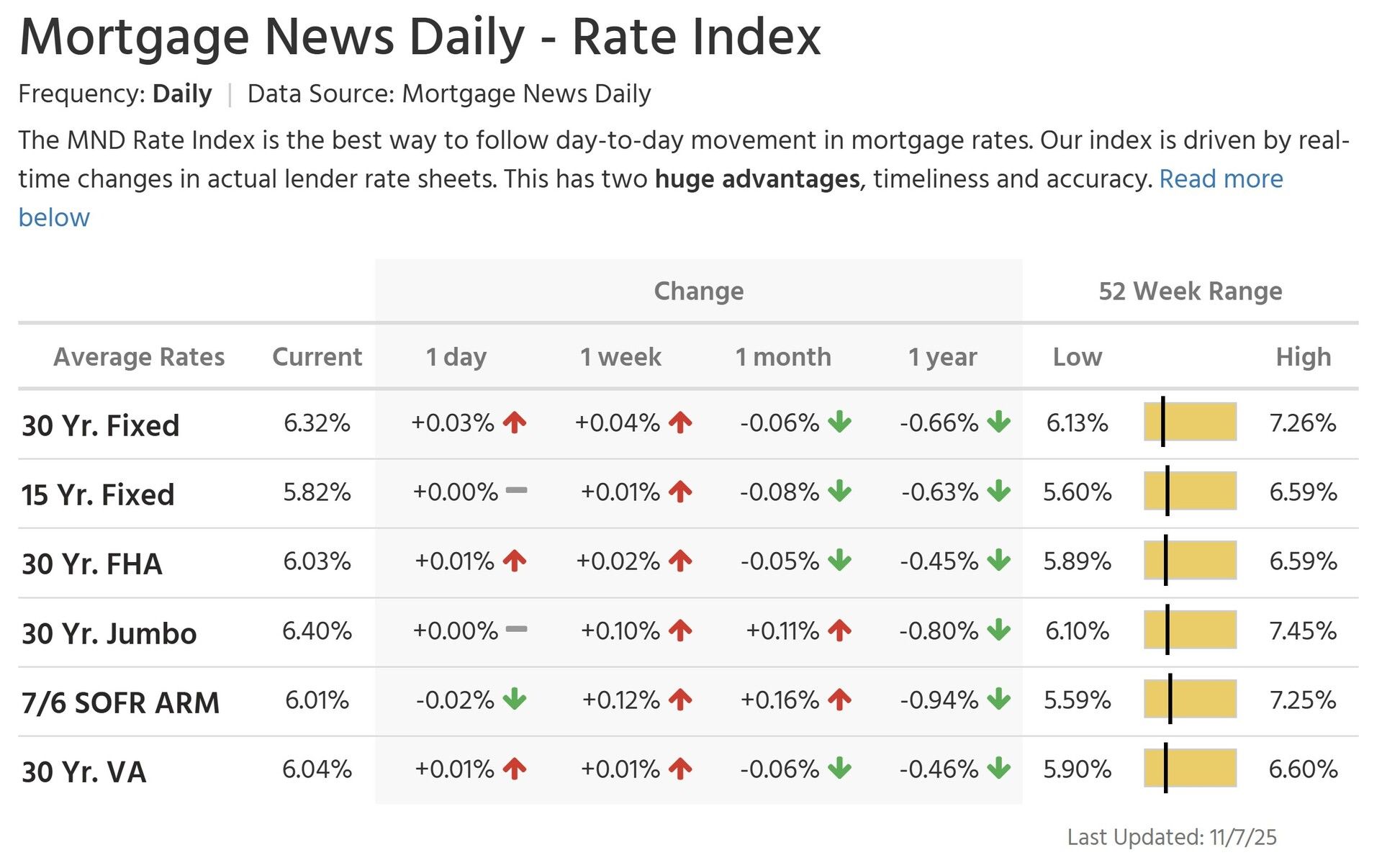 This week’s average 30-year fixed mortgage rate is 6.32% (⬆️ 0.04 from this time last week.) Last year’s rate: 6.98%.